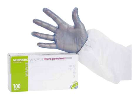 Gant en chlorure de polyvinyle, Poudrage : amidon de maïs, Absence de protéines du latex et d’accélérateurs.
